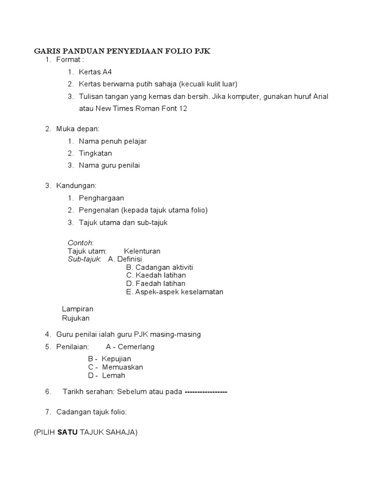 Garis Panduan Penyediaan Folio Pjk Pdf