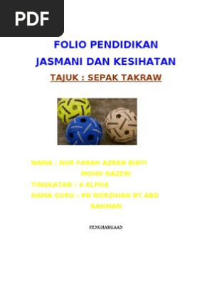 74374140 Folio Pjk Doc Folio Pendidikan Jasmani Dan Kesihatan Tajuk Sepak Takraw Nama Nur Farah Azren Binti Mohd Nazeri Tingkatan 4 Alpha Nama Course Hero